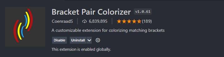 Bracket Pair Colorizer by CoenraadS is an extension for coloring the brackets of the code. This extension facilitates you with a function of coloring the brackets used in your code- different colors for different levels of brackets. Nested functions/code blocks implementations makes your code more confusing. Especially, you get confused between the opening and closing brackets pairs. This extension colorizes your brackets and makes your code easily readable.